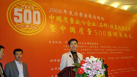 11月8日,在全国政协大礼堂举办的2008年度中国质量品牌大型消费者公益调查中,永康市群喜门业有限公司喜获“室内门行业十大质量品牌”“中国质量500强”,群喜公司总经理单泽喜上台领奖,并接受中央电视台记者的采访。